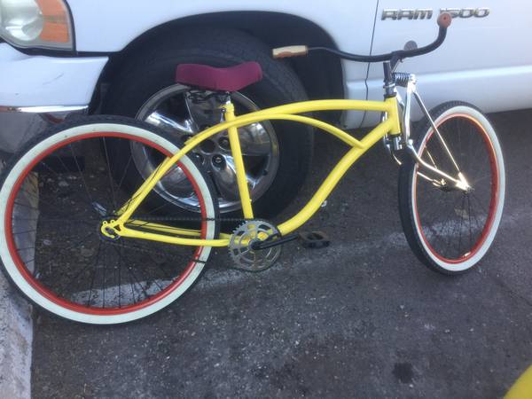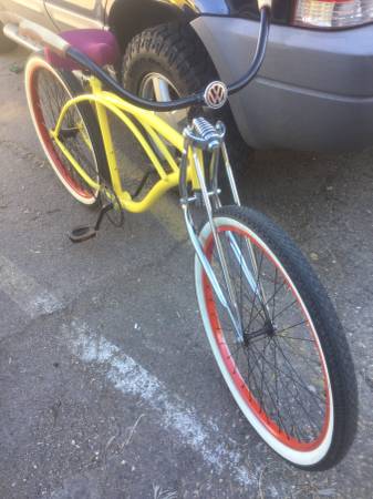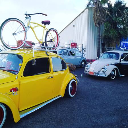 As far as custom Beetles go, this German fireball is just covered in awesome sauce. From the wheels to the luggage racks. Every decision made adds to the character. Full stereo system, retouched interior and best of all, the matching beach cruiser is included! So if/when one of the 12 engine bits go bad you won’t be left stranded. Personal note: I hate yellow and red color combos because it triggers a Pavlov effect for In-N-Out. Now I can’t stop thinking about a 2x2 animal style.