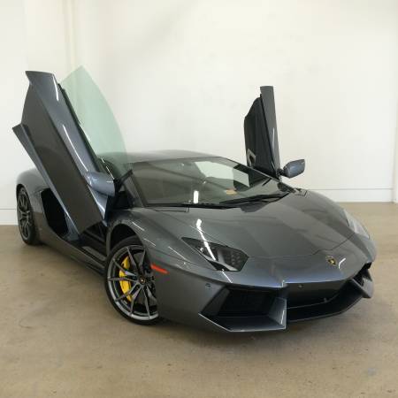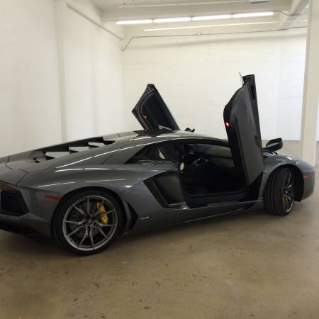 2015 LAMBOBORGHINNI AVENTADOR,custom color grigio estoque / black with contrast stitching,6.5 V-12, 7 speed ISR,4wd haldex sys,transparent engine,yellow callipers, heated seats, carbon fiber,park assit,baffel switch can increase H.P. by 60 extra Horse Power install by BH Lamborghinni gives car a very mean sound.MSRP 445,415.00,the fast the wild the exotic if that's what you need this is it.will consider trades,call,text,e-mail,